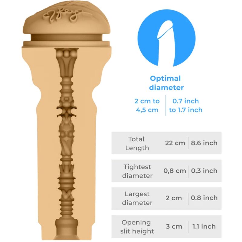 El masturbador FeelReya contiene un material suave similar a la piel que ha sido moldeado a partir de las partes más íntimas del cuerpo de Reya para brindarte LA interacción sexual más real con tu creador de contenido favorito.