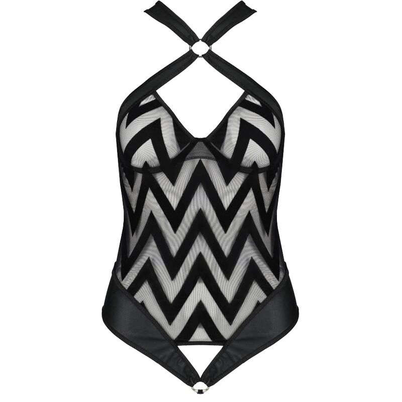 El teddy Hima es una extraordinaria propuesta de la marca Passion, junto a la cual no se puede pasar con indiferencia. El rebaño decorativo, las inserciones de cuero y las articulaciones en forma de círculos hacen que cada mujer se vea única